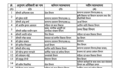 रायपुर में सचिवालय सेवा के 16 अनुभाग अधिकारियों का तबादला, देखें लिस्ट