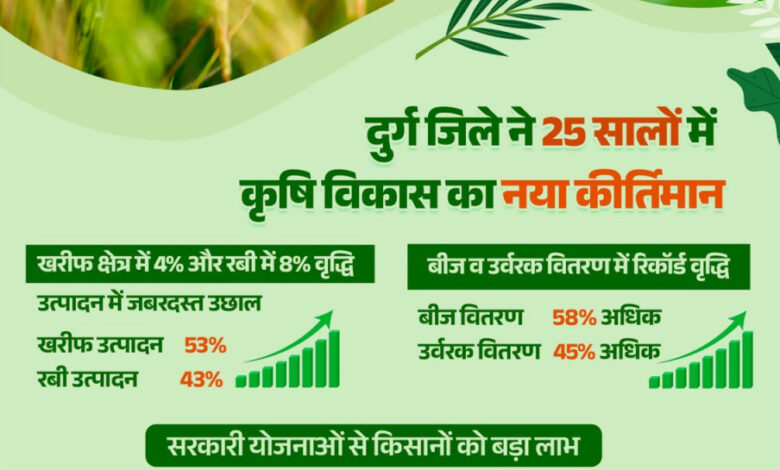 दुर्ग कृषि विभाग की 25 वर्ष की उपलब्धियाँ, किसानों की आय और उत्पादन क्षमता में बड़ा सुधार