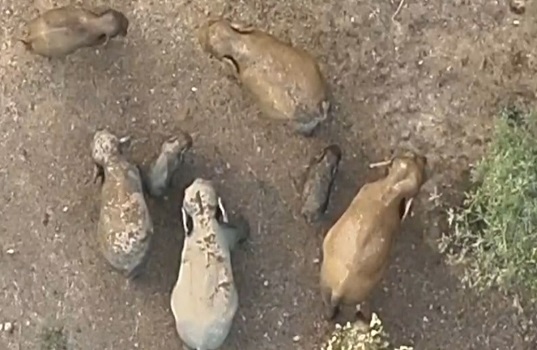 ड्रोन कैमरे से मिले दृश्य में हाथियों का दल कुडेकेला परिसर के गूडाघाट डेम के पास देखा गया। मादा हाथी अपने शावकों को बीच में रखकर आगे बढ़ती दिखाई दी। वन विभाग के अनुसार दोनों शावकों की उम्र लगभग छह महीने के आसपास है।