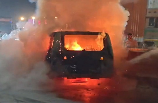 घटना की सूचना मिलते ही पुलिस और दमकल टीम ने मौके पर पहुंचकर आग पर काबू पाया। बाद में ट्रैफिक की आवाजाही को प्रभावित होने से बचाने के लिए पुलिस ने आवश्यक कदम उठाए।