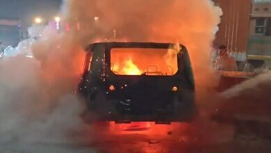 बीच सड़क धधकी कार: तेलीबांधा में आग का गोला बनी गाड़ी, बाल-बाल बचे झारखंड के निवासी