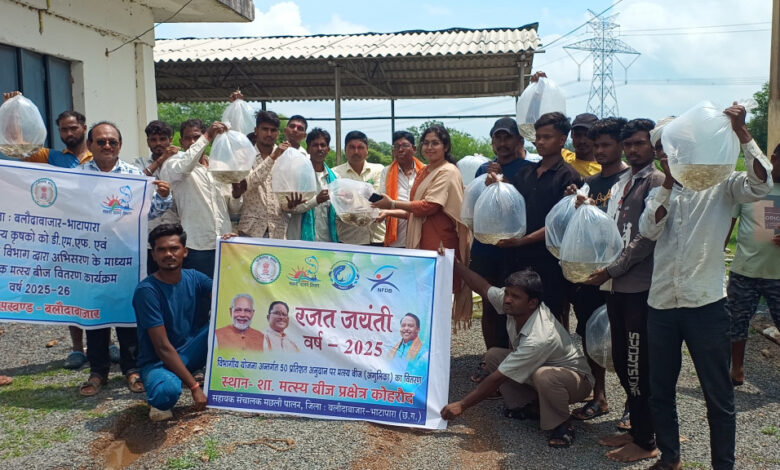 रायपुर| छत्तीसगढ़ की रजत जयंती के अवसर पर राज्य सरकार ने मत्स्य पालन को प्रोत्साहित करने और ग्रामीण आजीविका को सशक्त बनाने की दिशा में एक और महत्वपूर्ण कदम उठाया है। जिले के सभी विकासखण्डों के 734 मत्स्य कृषकों को शत-प्रतिशत अनुदान पर फिंगरलिंग (मछली बीज) का वितरण किया गया है। यह वितरण गौड़ खनिज न्यास मद एवं मत्स्य पालन विभाग के अभिसरण से संभव हुआ है।