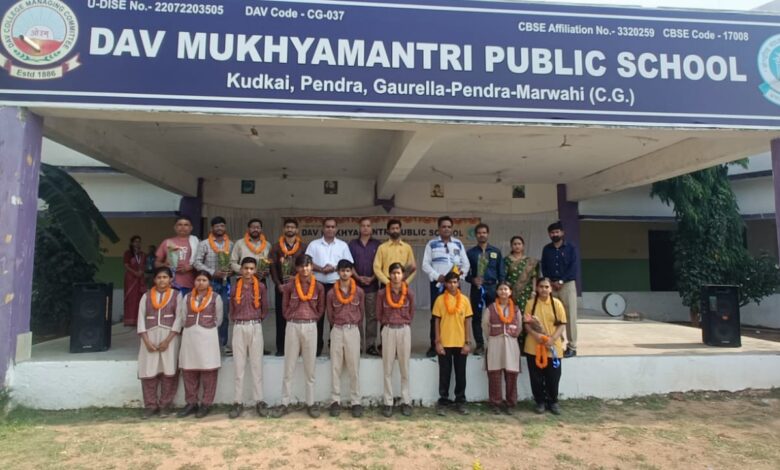 डीएवी मुख्यमंत्री पब्लिक स्कूल, कुडकई पेंड्रा ने इस वर्ष कक्षा 10वीं के बोर्ड परीक्षा परिणाम में शानदार सफलता हासिल करते हुए शत-प्रतिशत परिणाम दर्ज किया है। विद्यालय के सभी छात्र-छात्राओं ने सफलता प्राप्त कर स्कूल एवं क्षेत्र का नाम गौरवान्वित किया है। इस अवसर पर प्राचार्य राकेश कुट्टन जी के सानिध्य में शनिवार को सभी बच्चों एवं उनके अभिभावकों का सम्मान किया गया ।प्रथम स्थान रही गार्गी बंजारे, 91.80% प्रतिशत, ,मोनिका मरावी,89.20% यशी ठाकुर 88% इरम हसन 84.40% अप्सरा केशरवानी,84%अंक हासिल कर विद्यालय का नाम रोशन किया। आर्यवीर वर्मा ,आलेख केशरवानी, जय वर्धन यशवर्धन ,सिद्धार्थ शर्मा, ऐसे ही कुल 23 विद्यार्थियों में 16 विद्यार्थियों ने 70% अंक से ज्यादा अर्जित किए है।इन सभी विद्यार्थियों को विद्यालय की ओर से सम्मानित किया गया । देवेंद्र तिवारी जी ने प्राचार्य एवं शिक्षकों के प्रशंसा करते हुए कहा कि आप सभी के मार्गदर्शन में विद्यार्थियों ने कड़ी मेहनत और अनुशासन के साथ अध्ययन किया, जिसका परीक्षा परिणाम उत्कृष्ट के रूप में सामने आया। इसके तत्पश्चात विद्यालय के प्राचार्य राकेश कुट्टन जी ने सभी सफल विद्यार्थियों को बधाई देते हुए उनके उज्ज्वल भविष्य की कामना करते हुए कहा कि यह सफलता विद्यार्थियों की लगन, अभिभावकों के सहयोग और शिक्षकों के समर्पण का परिणाम है। विद्यालय परिवार ने इस उपलब्धि पर हर्ष व्यक्त करते हुए आगे भी इसी प्रकार उत्कृष्ट परिणाम देने का संकल्प लिया है।अभिभावकों एवं क्षेत्रवासियों ने भी विद्यालय की इस सफलता पर प्रसन्नता व्यक्त करते हुए छात्रों को शुभकामनाएँ दी हैं।