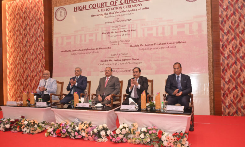 रायपुर। छत्तीसगढ़ राज्य न्यायिक अकादमी की ई-स्मारिका का डिजिटल विमोचन किया गया। “नर्चरिंग द फ्यूचर ऑफ द ज्यूडिशियरी” शीर्षक से प्रकाशित इस ई-स्मारिका का लोकार्पण भारत के मुख्य न्यायाधीश सूर्यकांत द्वारा किया गया।