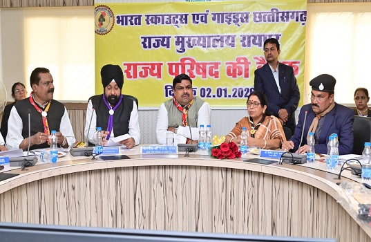 रायपुर। भारत स्काउट्स एवं गाइड्स, छत्तीसगढ़ राज्य परिषद की महत्वपूर्ण बैठक आज मंत्रालय, महानदी भवन नवा रायपुर में संपन्न हुई। बैठक की अध्यक्षता श्री गजेन्द्र यादव, स्कूल शिक्षा मंत्री एवं अध्यक्ष, छत्तीसगढ़ भारत स्काउट्स एवं गाइड्स ने की। बैठक का मुख्य केंद्रबिंदु छत्तीसगढ़ में आयोजित होने वाली प्रथम राष्ट्रीय रोवर-रेंजर जम्बूरी 2026 रहा। यह जम्बूरी बालोद जिले के ग्राम दुधली में 9 जनवरी से 13 जनवरी 2026 तक आयोजित की जाएगी। बैठक में जम्बूरी की तैयारियों, कार्यक्रम संरचना, प्रतिभागियों की आवासीय व्यवस्था, सुरक्षा, परिवहन, अनुशासन, सांस्कृतिक गतिविधियों एवं स्वयंसेवकों की भूमिका पर विस्तृत चर्चा की गई।