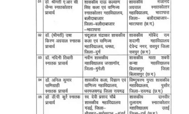 जारी आदेश के अनुसार विभिन्न शासकीय महाविद्यालयों में पदस्थ अधिकारियों का प्रशासनिक आवश्यकताओं के तहत स्थानांतरण किया गया है। संबंधित अधिकारियों को निर्देश दिया गया है कि वे निर्धारित समय सीमा में नवीन पदस्थापना स्थल पर कार्यभार ग्रहण करें।