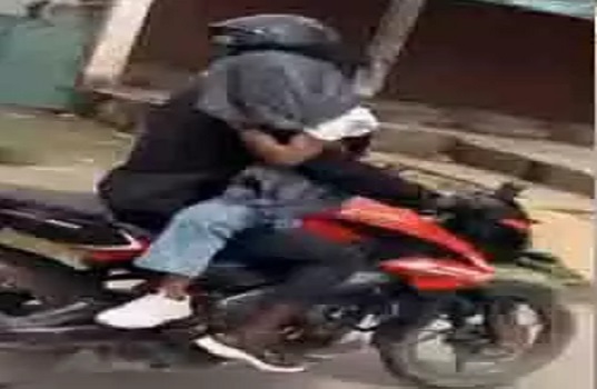 इश्क में भूले सुरक्षा: सरेआम बाइक पर रोमांस, नंबर प्लेट ने खोल दी पोल