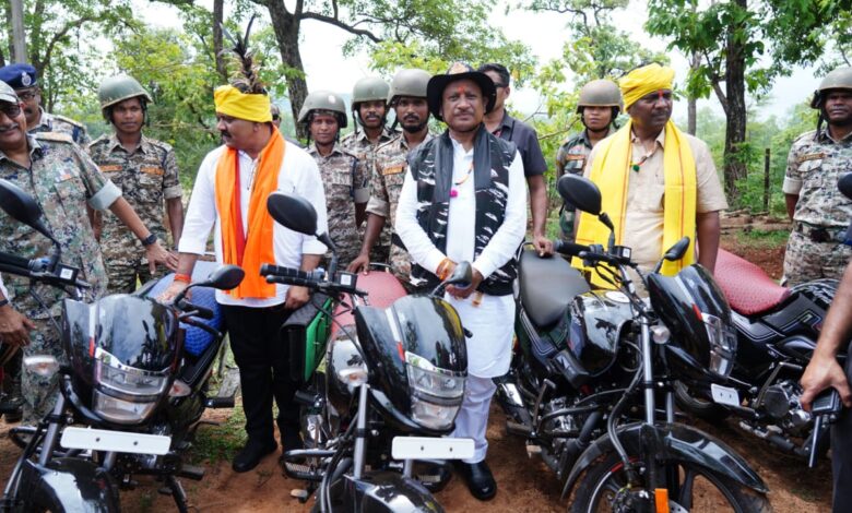 बासिंग सुरक्षा कैंप में आयोजित कार्यक्रम में मुख्यमंत्री विष्णु देव साय ने सुरक्षा बलों को गस्त करने के लिए 50 बाइक को जवानों के साथ हरी झंडी दिखाकर रवाना किया