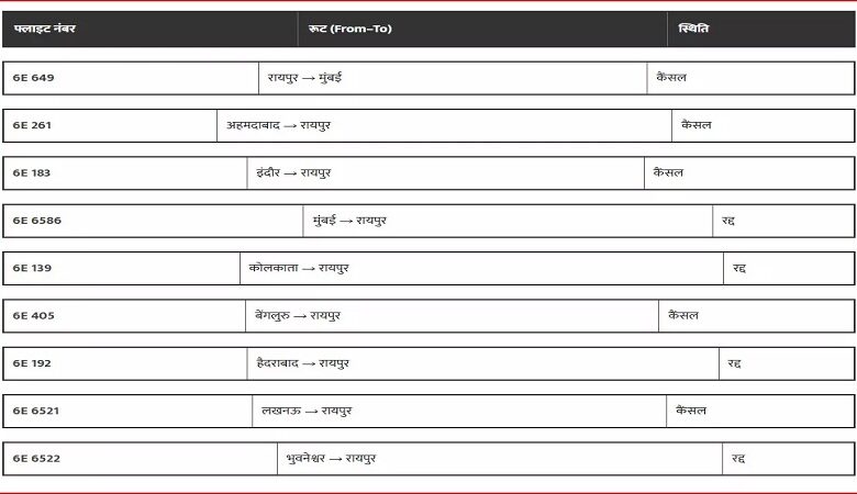इंडिगो परिचालन संकट का असर : रायपुर में आज भी कई उड़ानें रद्द, फ्लाइट शेड्यूल गड़बड़ाया