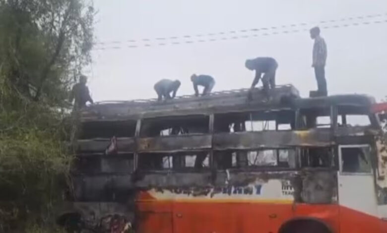 हाईटेंशन वायर से टकराई बस, पलभर में मचा हड़कंप
