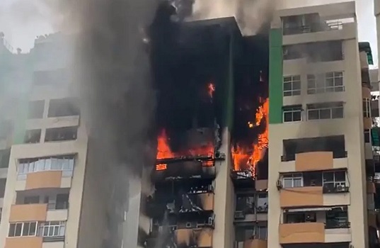 उत्तर प्रदेश के गाजियाबाद की गौर ग्रीन एवेन्यू सोसाइटी में बुधवार सुबह तेरह मंजिला इमारत के 9वीं मंजिल पर आग भड़क गई, देखते ही देखते आग ने 9वीं से 12वीं मंजिल तक के 8 फ्लैटों को अपनी चपेट में ले लिया और दूसरे टावर तक लपटें फैल गईं, सूचना मिलते ही दमकल विभाग की 20 से ज्यादा गाड़ियां मौके पर पहुंचीं और आग बुझाने का काम तेजी से शुरू किया गया, पुलिस और एंबुलेंस भी मौके पर तैनात कर दी गई
