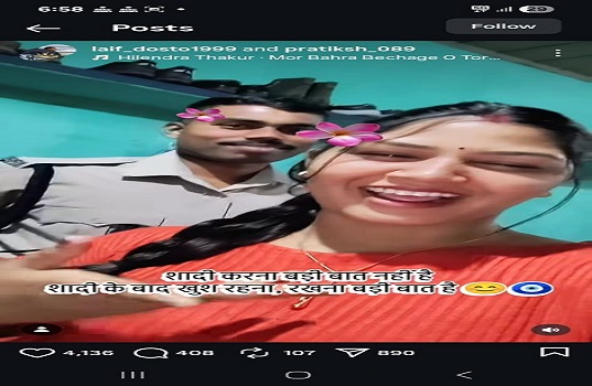 सोशल मीडिया पर इन दिनों एक पुलिस आरक्षक का अपनी पत्नी के साथ रील वीडियो ट्रेंड कर रहा है। वीडियो में जवान पुलिस की वर्दी पहने हुए नजर आ रहा है। इस वीडियो पर जब एक यूजर ने कमेंट करते हुए लिखा कि “अब आपकी बारी है” (कार्रवाई के संदर्भ में), तो जवान ने पीछे हटने के बजाय उसे टैग करते हुए रिप्लाई दिया— “आई एम वेटिंग ब्रो” (मैं इंतजार कर रहा हूं भाई)। इंस्टाग्राम पर इस जवान के एक-दो नहीं बल्कि आधे दर्जन से ज्यादा वीडियो वायरल हो रहे हैं।