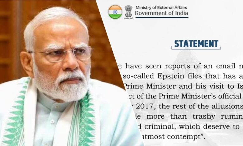 नई दिल्ली। एपस्टीन फाइल्स के नए दस्तावेजों के सार्वजनिक होने के बाद भारत सहित अंतरराष्ट्रीय स्तर पर राजनीतिक विवाद गहरा गया है। इन फाइल्स में प्रधानमंत्री नरेंद्र मोदी के इजराइल दौरे का जिक्र होने की खबरों पर भारत के विदेश मंत्रालय ने सख्त रुख अपनाया है। मंत्रालय ने इन दावों को पूरी तरह निराधार और बकवास बताते हुए खारिज कर दिया है। मंत्रालय ने स्पष्ट किया कि प्रधानमंत्री का वर्ष 2017 का इजराइल दौरा एक आधिकारिक कूटनीतिक यात्रा थी और उसे किसी भी रूप में इन फाइल्स से जोड़ना गलत है। विपक्षी दल कांग्रेस ने इस मुद्दे को लेकर सरकार पर निशाना साधा है।