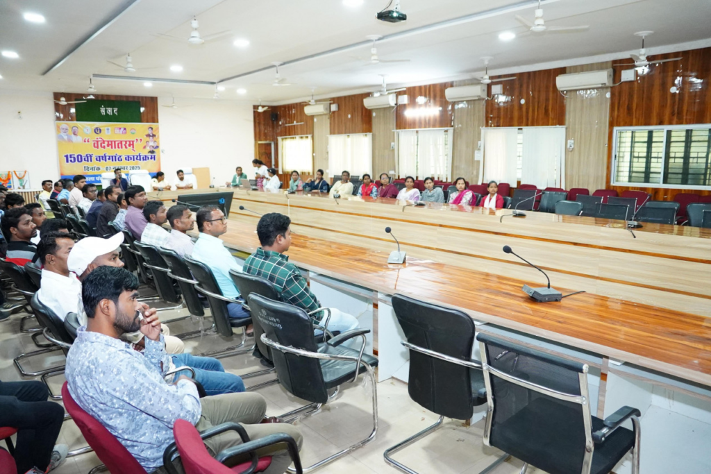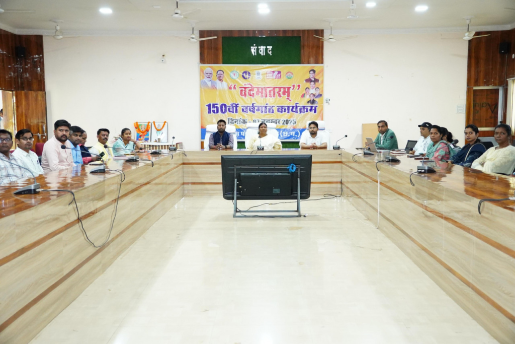 कलेक्टरेट एवं जिला पंचायत कार्यालय में अधिकारियों, कर्मचारियों, जनप्रतिनिधियों और विद्यार्थियों ने एक स्वर में “वंदे मातरम्” का सामूहिक गायन किया।
